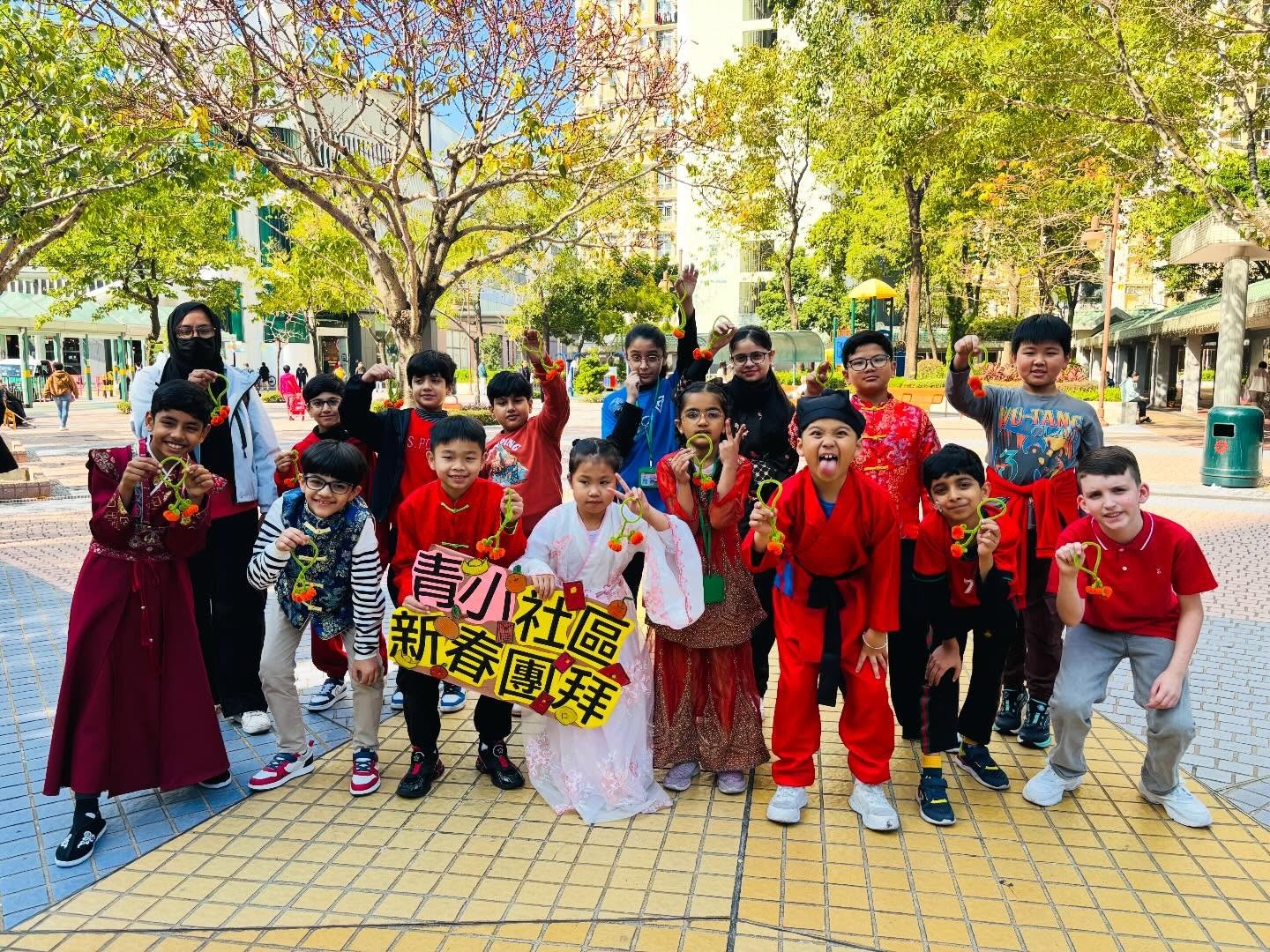 本校於家校新春文化團圓日當天舉辦了「非華語學生社區新春團拜活動」,由老師帶領非華語學生前往學校鄰近社區進行新春團拜。青小學生親手製作了超過一百對絨絲年桔,贈予區內居民,傳遞新年祝福。