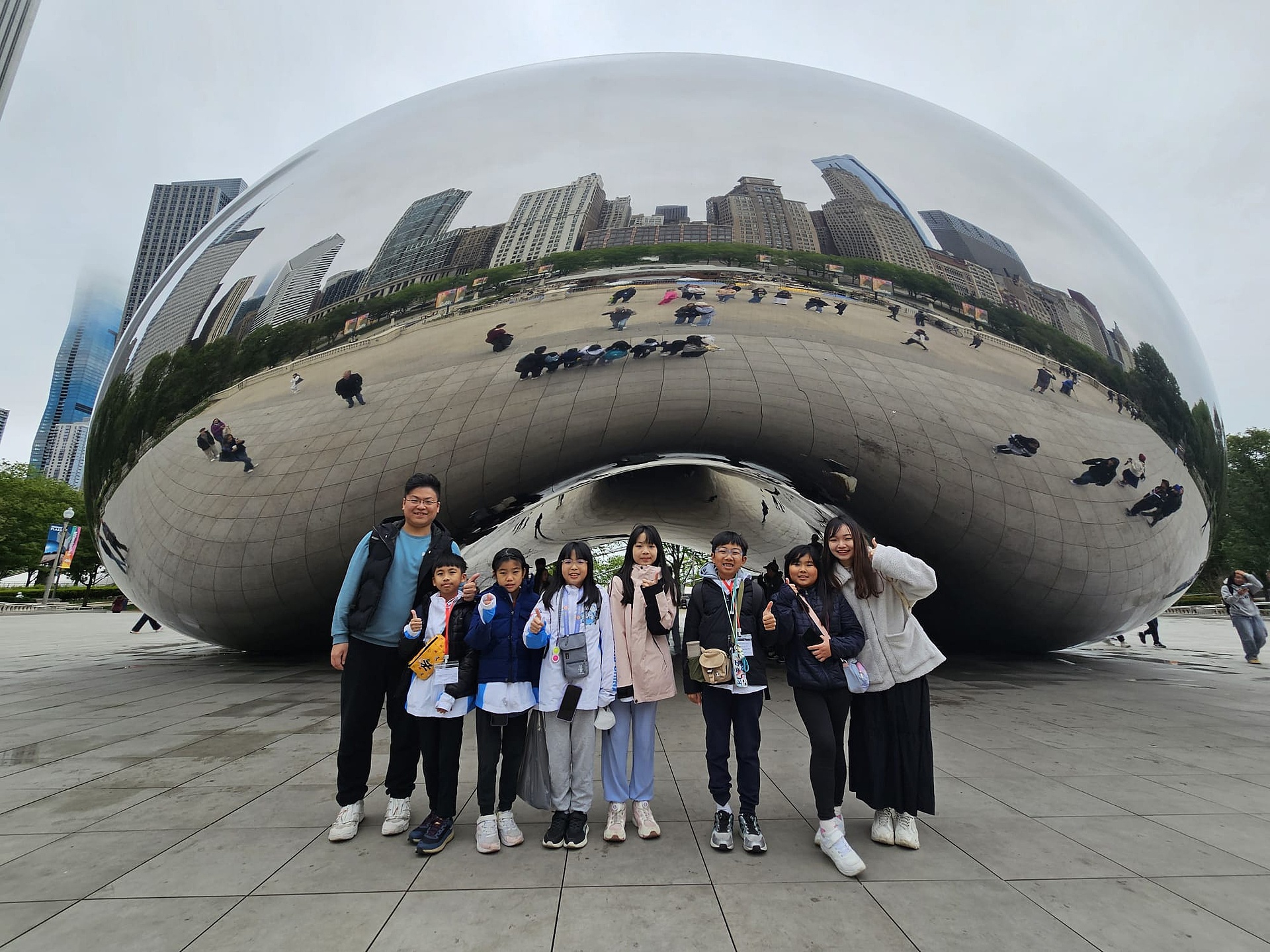 經歷完14小時的長途飛行後,我們正式開始在美國的第一天行程。美好的一天由早餐開始,於是青童在美國自己炮製了夾餅做早餐。我們參觀了位於芝加哥市的雲門,雲門的拋光面反射到城市的高樓大廈。我們亦到訪全美最高的威利斯大廈,前往103層高的觀景台。站在透明玻璃下合照,像是站在雲朵之上。