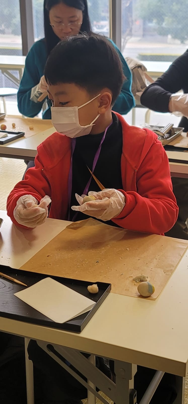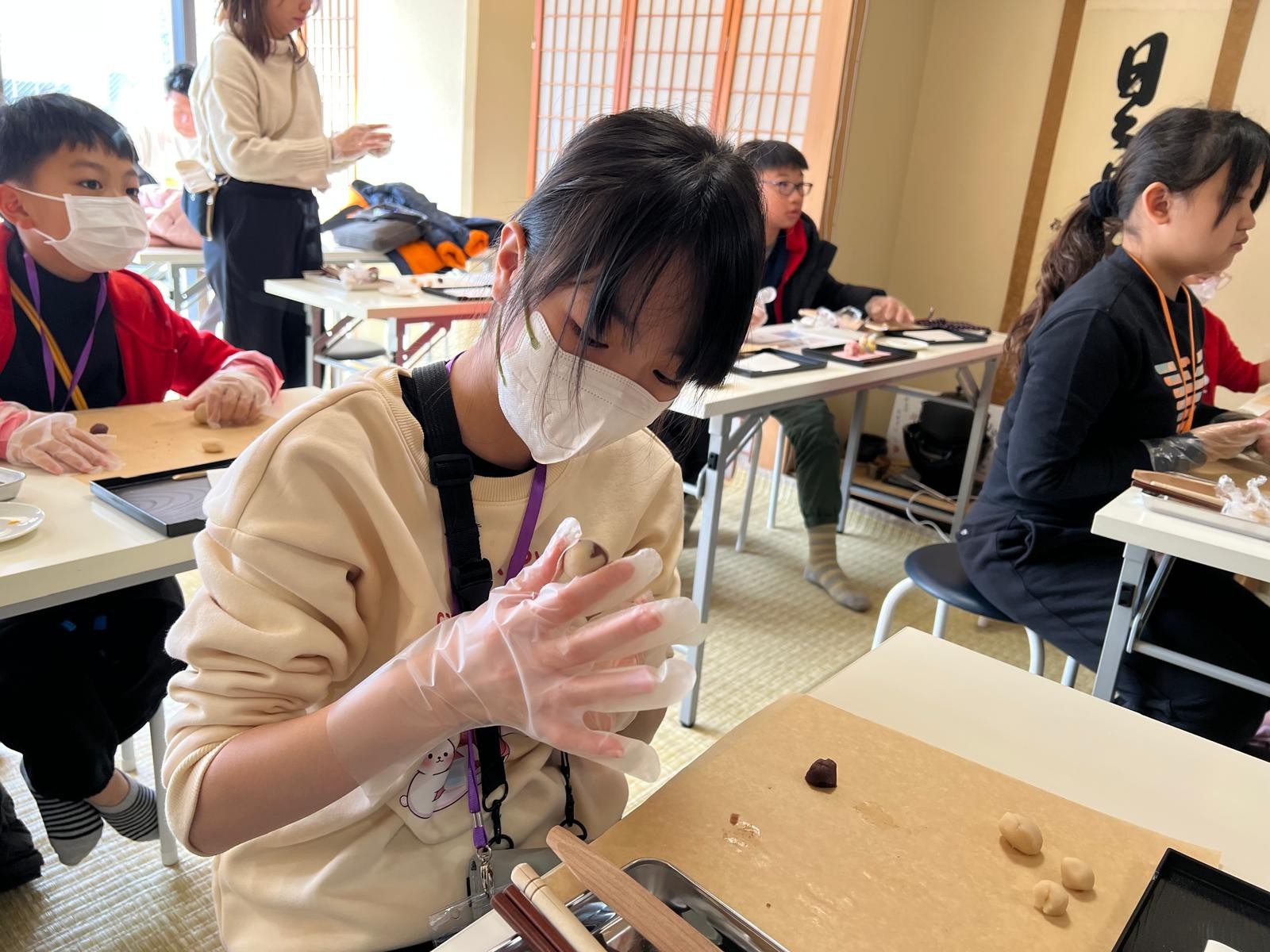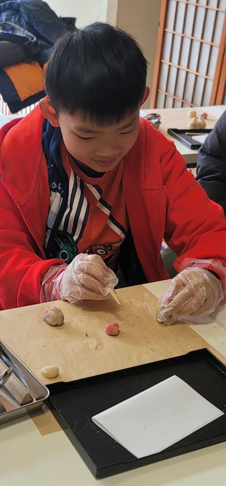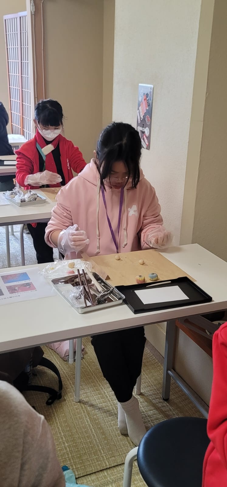 這是第一次同學製作和果子給自己享用!這些和果子形態各有不同,真有趣!在品嚐和果子的時候,同學們也學習日式的沖茶及品茶,滿有儀式感。