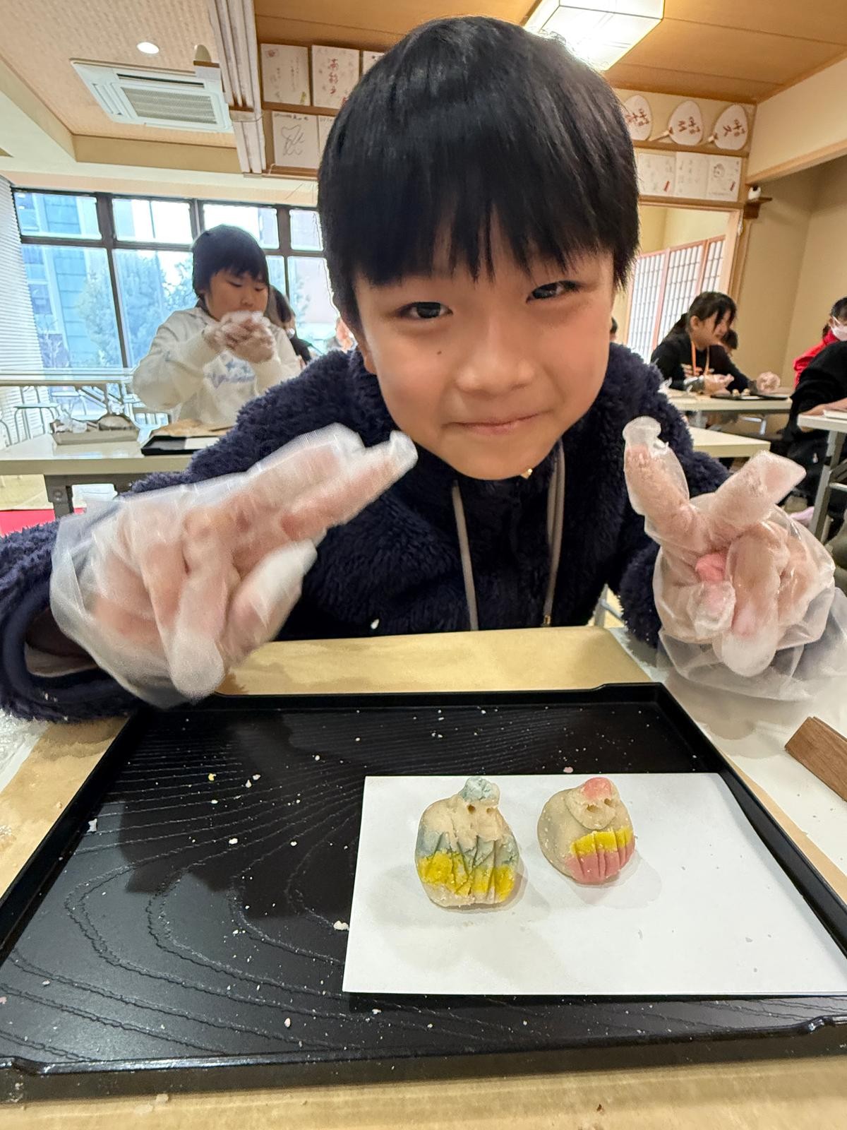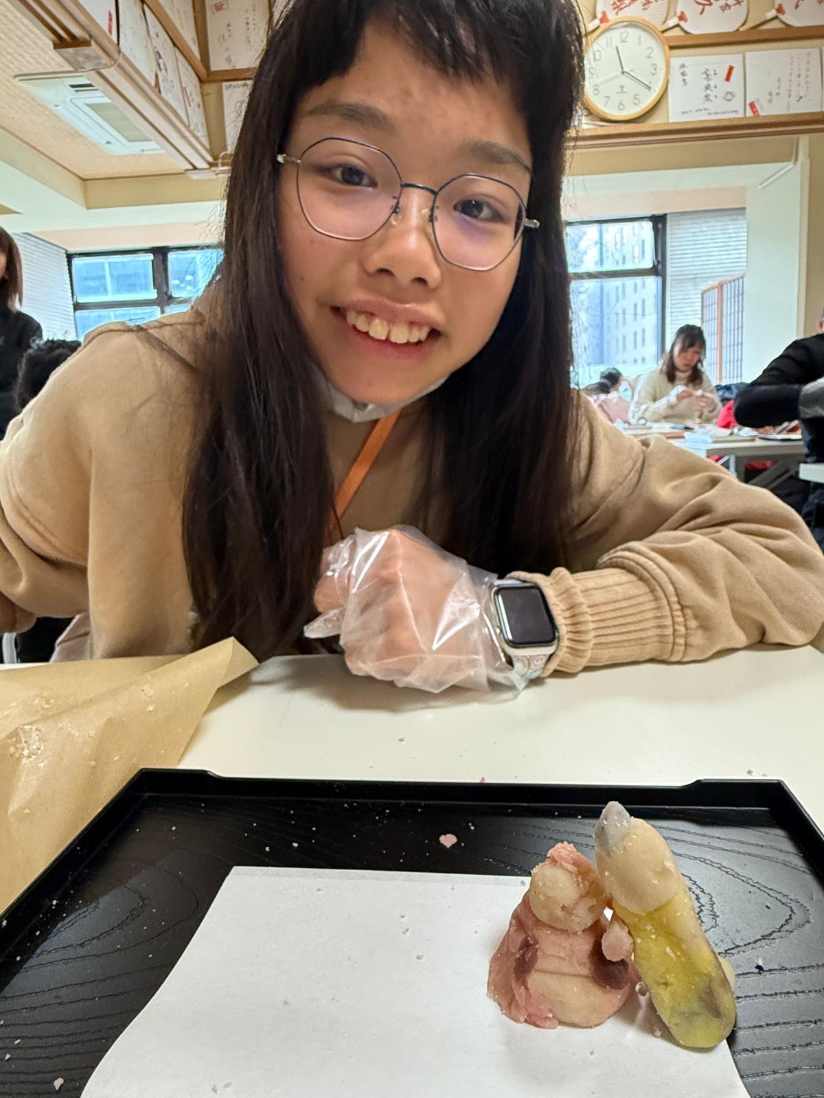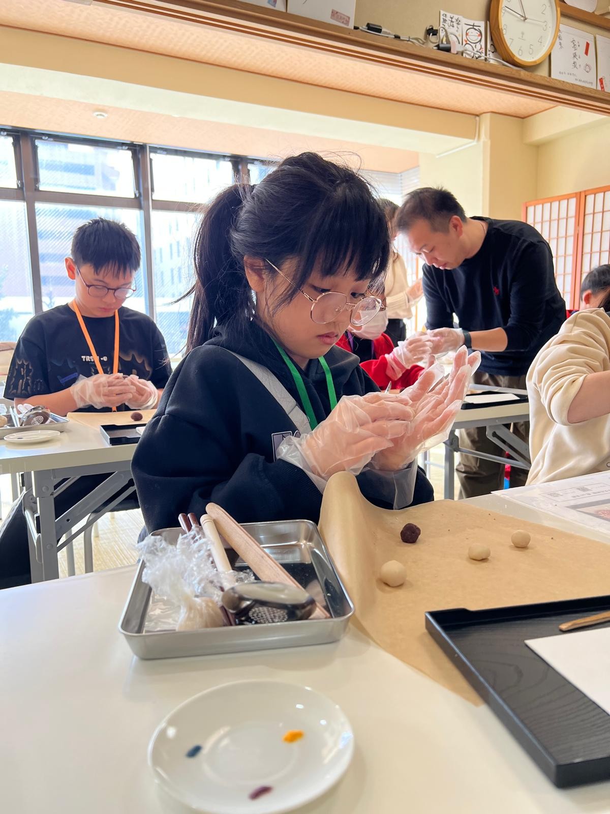 這是第一次同學製作和果子給自己享用!這些和果子形態各有不同,真有趣!在品嚐和果子的時候,同學們也學習日式的沖茶及品茶,滿有儀式感。