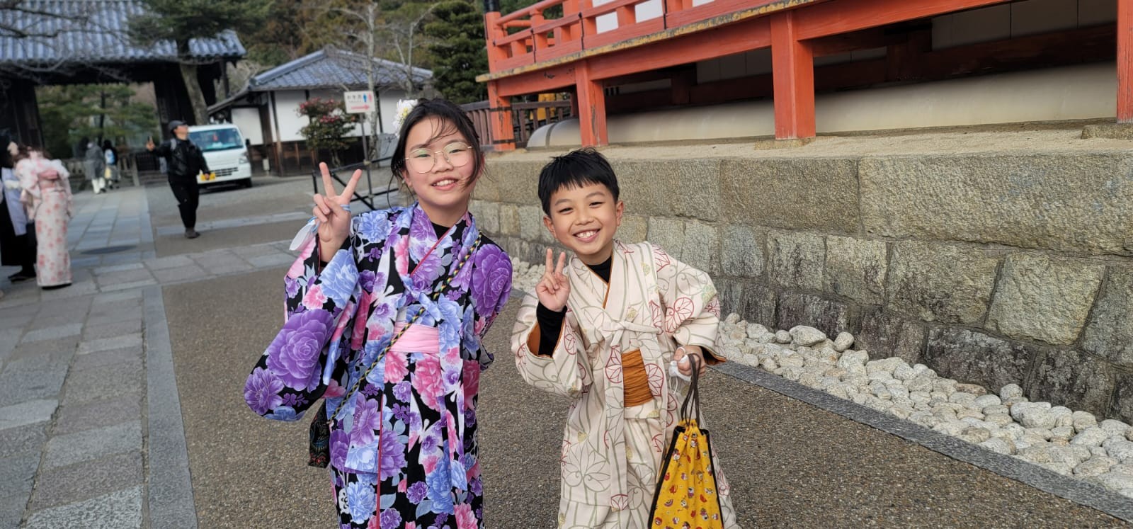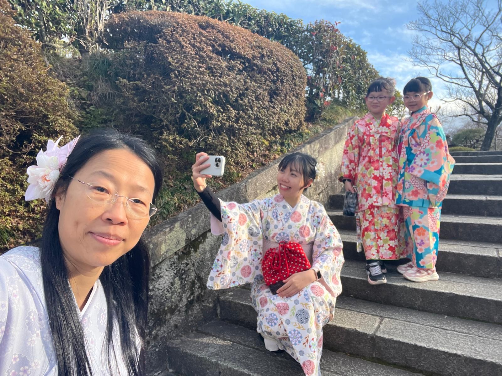 穿和服也是同學們期待的節目。穿上和服,在陽光的映襯下,步入清水寺,以大自然為背景,同學們留下了不少美麗的蹤跡呢!