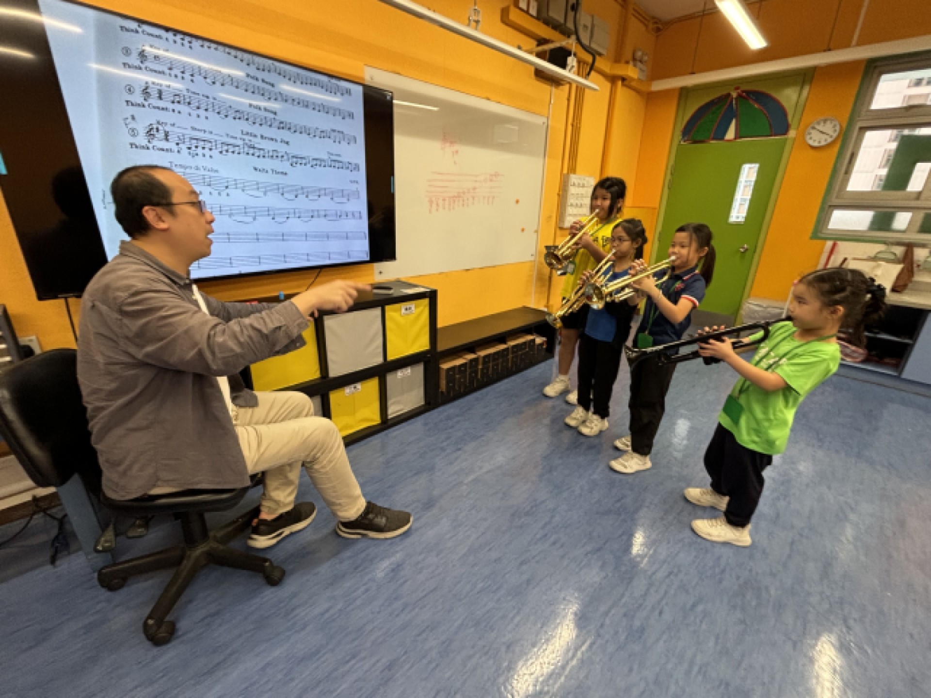 青小的小號王聚集在一起,手中握著喇叭,努力練習。老師耐心地教授他們基本的音階和簡單的樂曲,一同演奏。通過這個課程,學生伊們不僅學習到了小號的吹奏技巧,更收穫了友誼和團隊合作的精神。未來的音樂家們,加油!