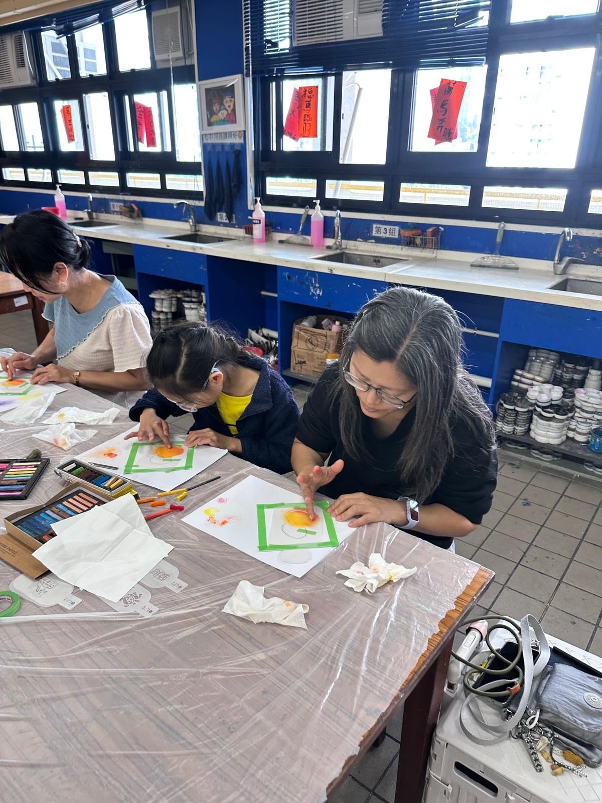 視藝科在2月6日舉辦了「親子新春和諧粉彩工作坊(高小組)」,家長與孩子們共同創作出充滿新年氣氛的和諧粉彩作品,共度了一段温馨的藝術時光。