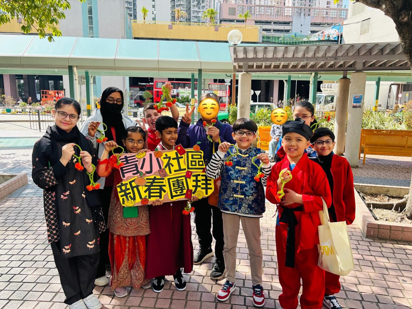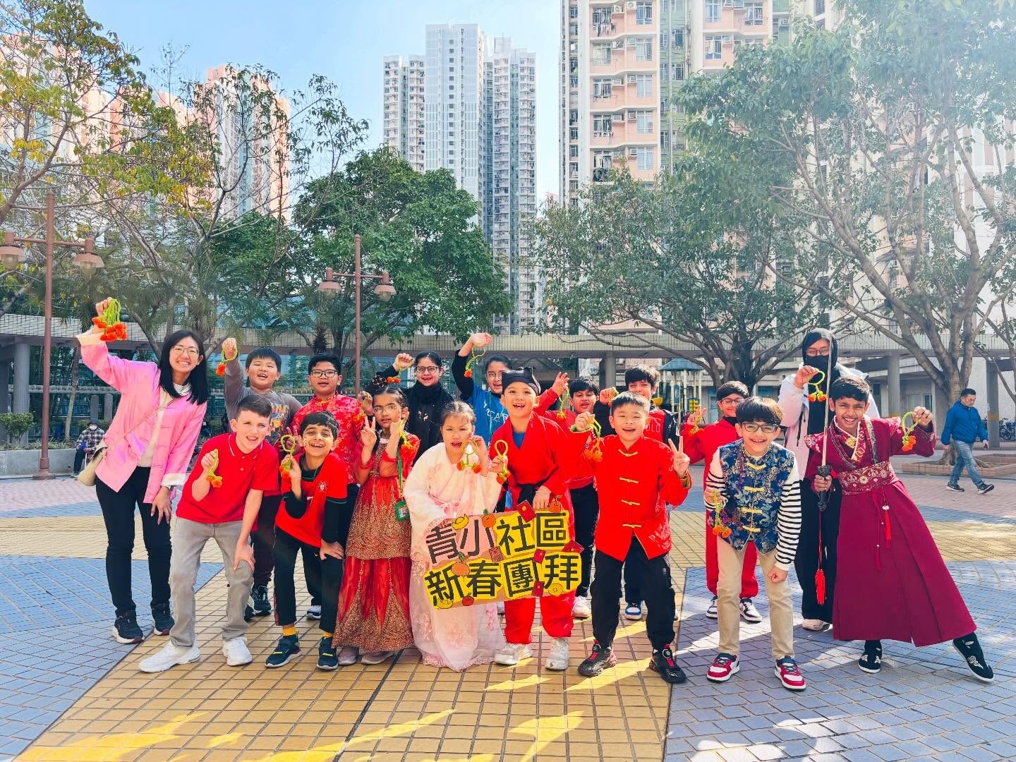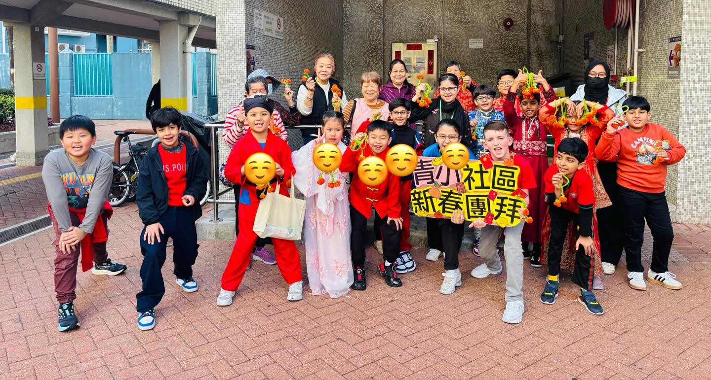 本校於家校新春文化團圓日當天舉辦了「非華語學生社區新春團拜活動」,由老師帶領非華語學生前往學校鄰近社區進行新春團拜。青小學生親手製作了超過一百對絨絲年桔,贈予區內居民,傳遞新年祝福。