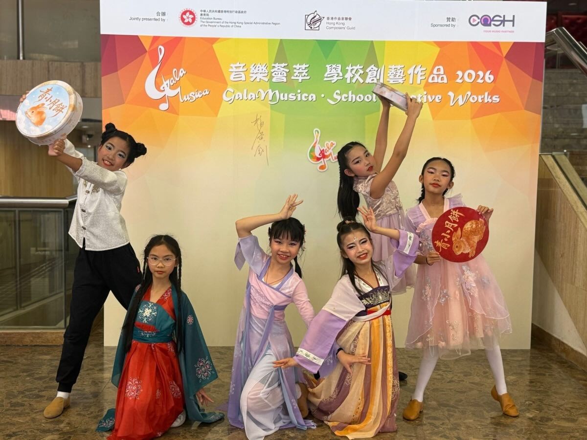 青小首次參加由香港教育局主辦的「音樂薈萃.學校創藝作品」比賽,15位小四至小六學生一手包辦作曲、演奏、舞蹈設計及AI生成影片製作,充分體現自主學習和團隊合作的精神。