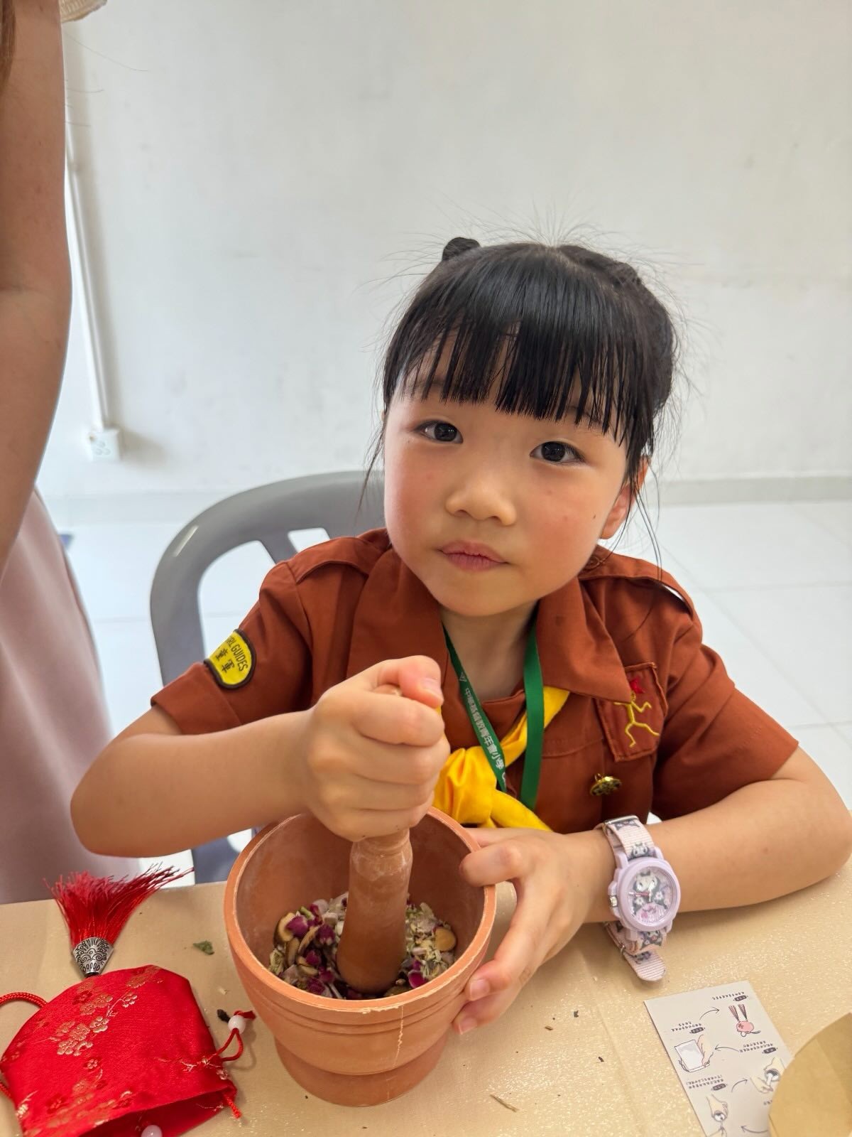 當天適逢全民國家安全教育日,小女童軍不僅透過各項攤位遊戲,深入瞭解國家安全的重要性,更與家人及隊友一同學習中華文化,動手製作香囊,並體驗了多項新興運動,包括匹克球、圓網球和布袋球。難得能在户外放鬆一下,小女童軍們都玩得樂而忘返!