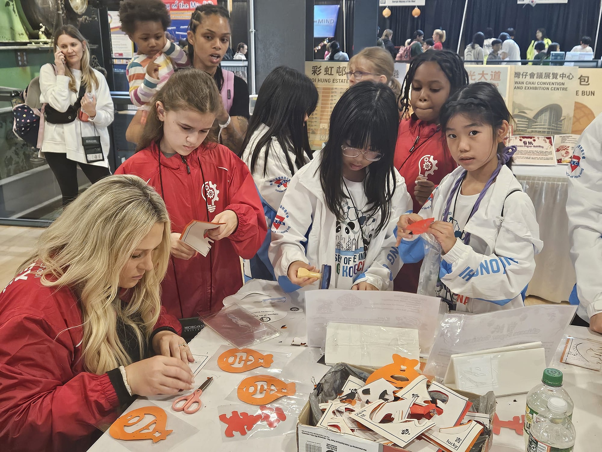 最後一節我們留在創意嘉年華的香港攤位,向外國人展示中國的剪紙傳統技藝,教導他們如何剪紙。
