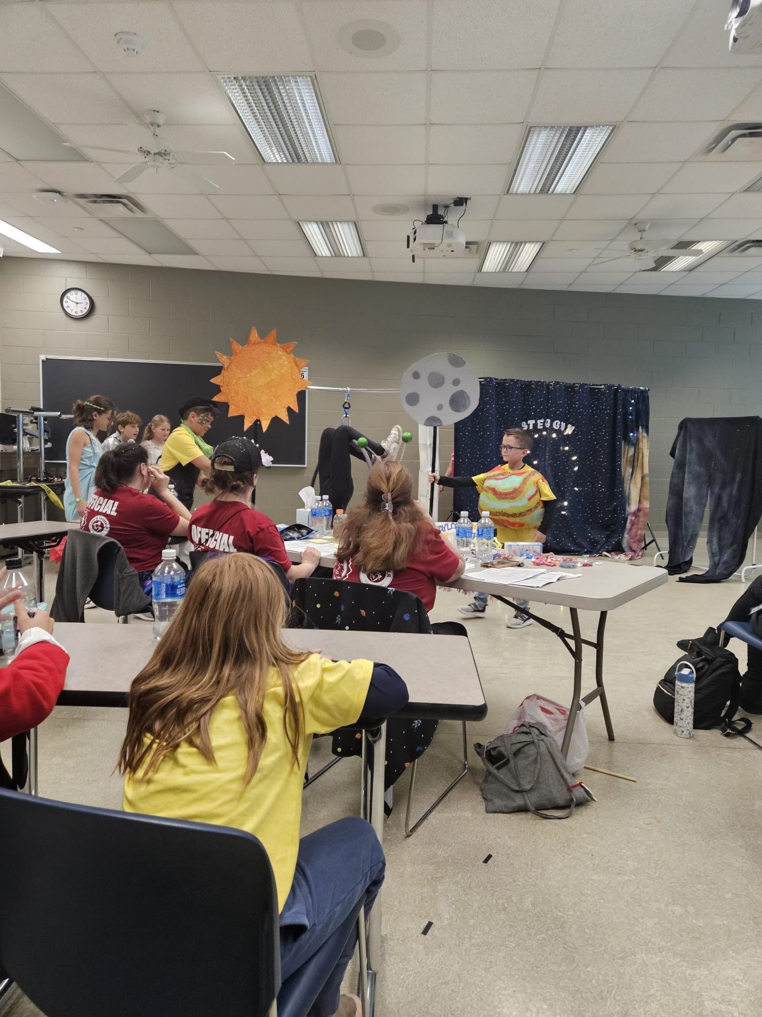來到美國備戰多天,終於到了第一個比賽項目-即興解難題目。青童在沒有教練陪同情況下,在神秘的房間中互相合作即場解難裁決提出的難題。來自佛羅里達州威尼斯市的Buddy team教練Ms Jackie在賽前為青童作提點及練習,好似學生們可以輕鬆心情去應付難題。經過20分鐘的漫長作戰後,大會場地門外已聚集了一群支持者,為完成賽事的隊伍送上祝福及欣賞。