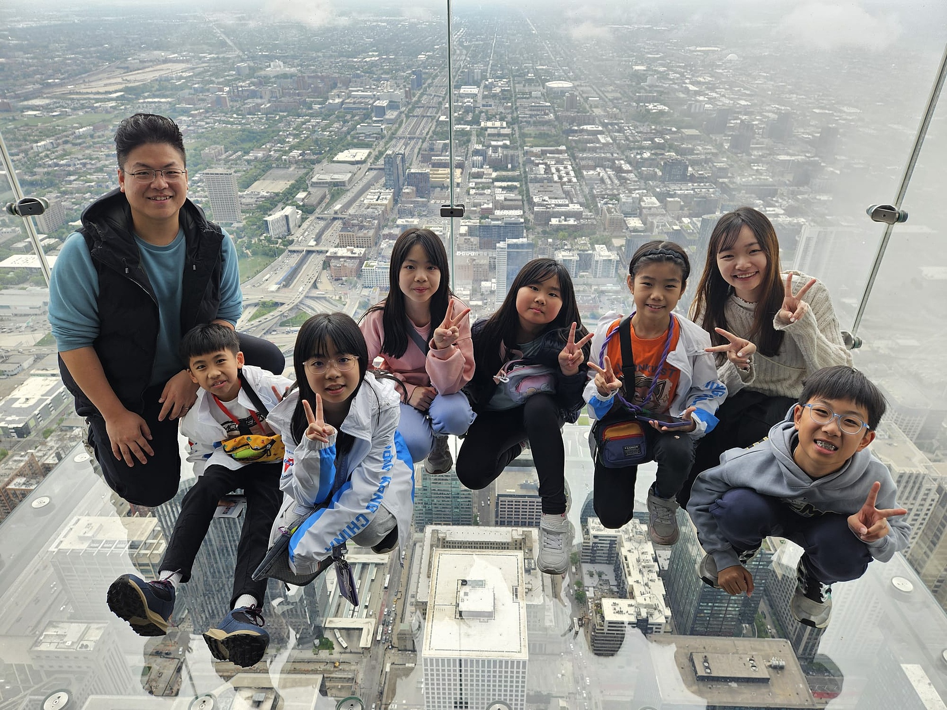 經歷完14小時的長途飛行後,我們正式開始在美國的第一天行程。美好的一天由早餐開始,於是青童在美國自己炮製了夾餅做早餐。我們參觀了位於芝加哥市的雲門,雲門的拋光面反射到城市的高樓大廈。我們亦到訪全美最高的威利斯大廈,前往103層高的觀景台。站在透明玻璃下合照,像是站在雲朵之上。