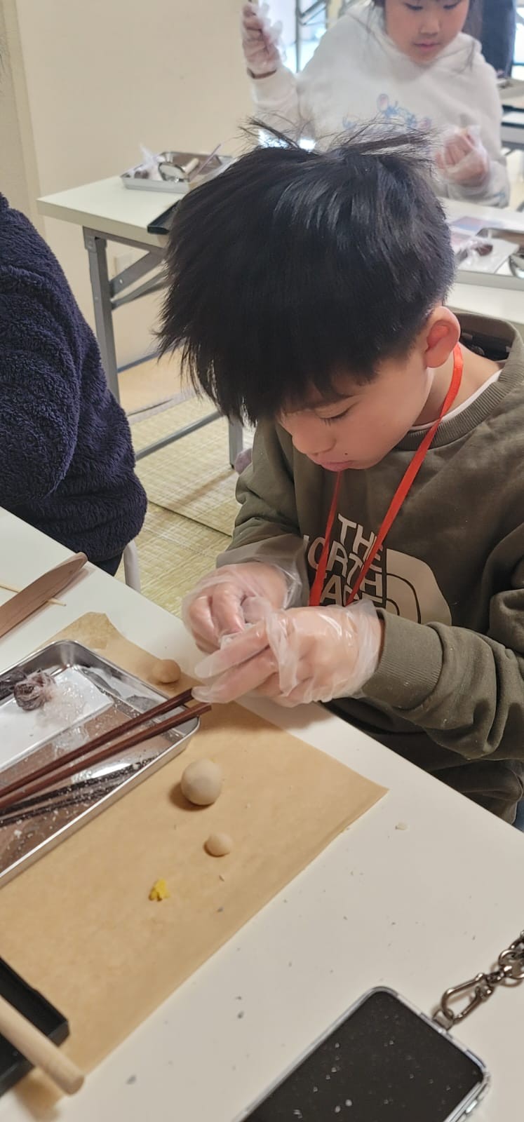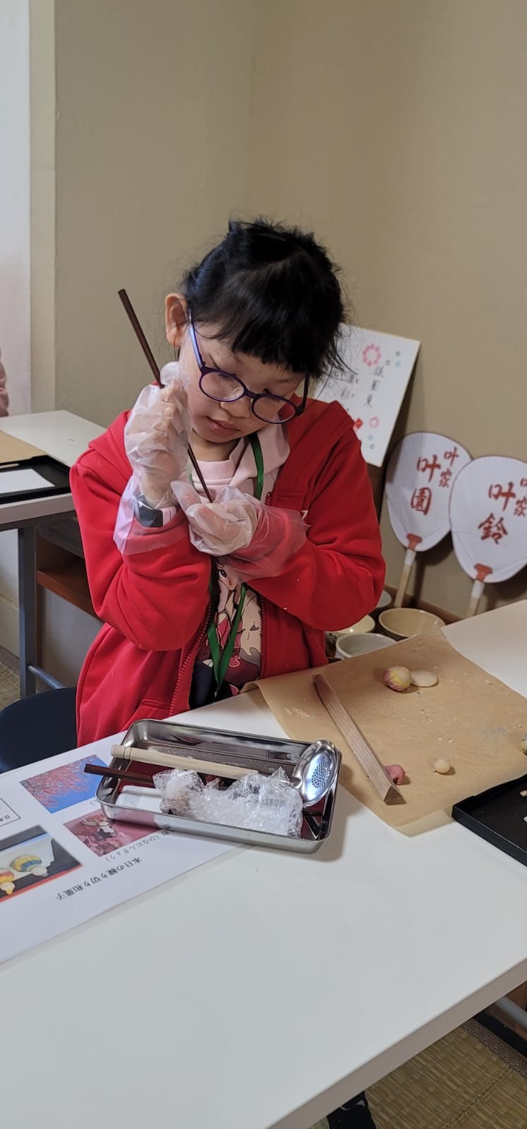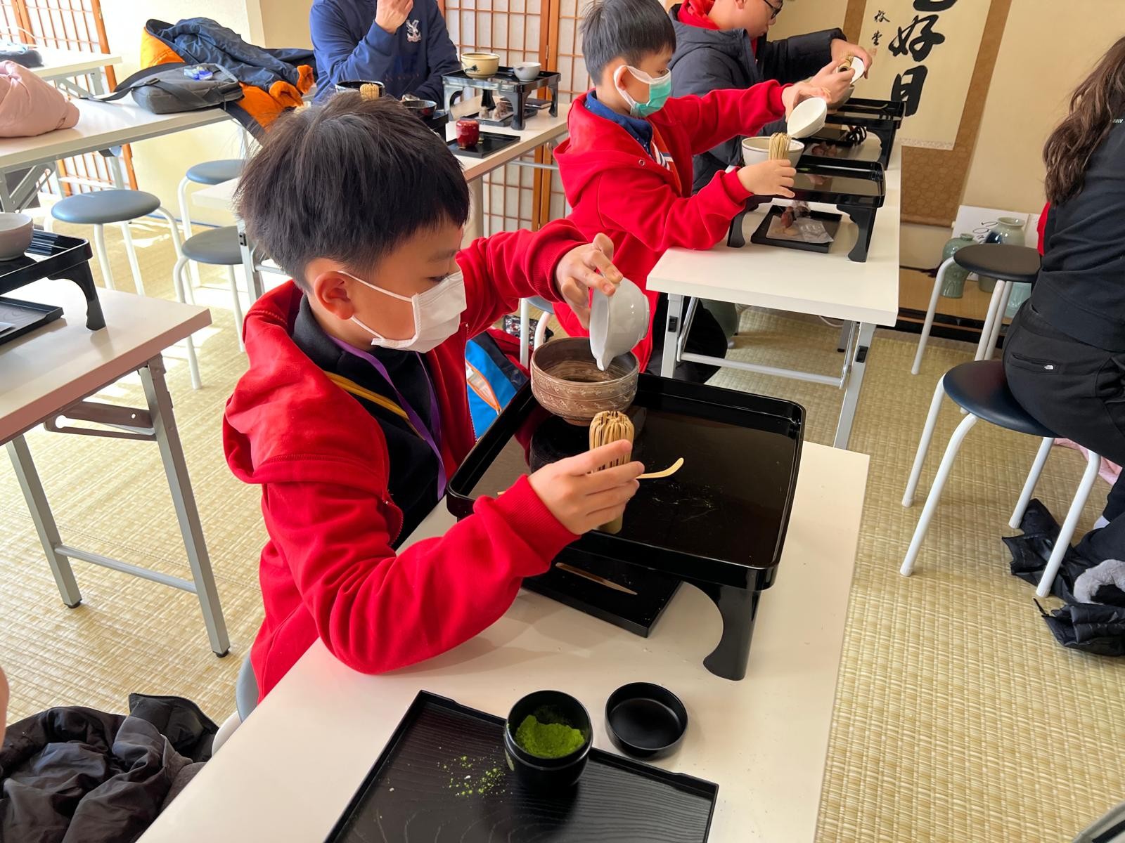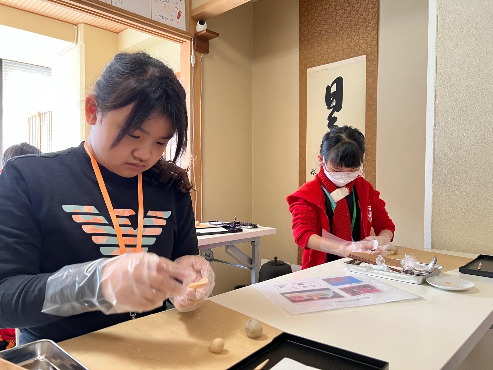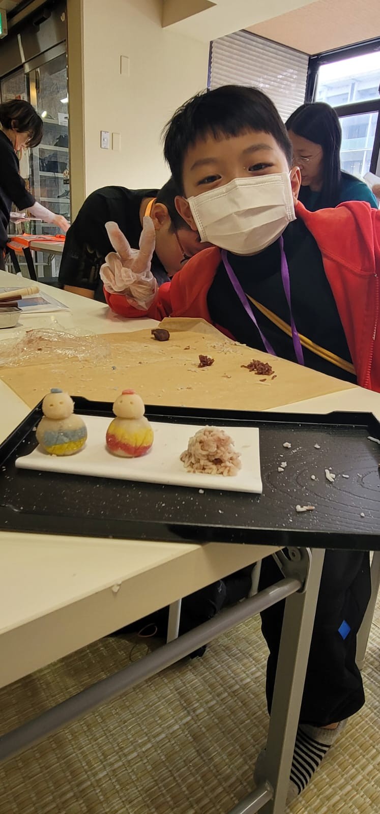 這是第一次同學製作和果子給自己享用!這些和果子形態各有不同,真有趣!在品嚐和果子的時候,同學們也學習日式的沖茶及品茶,滿有儀式感。