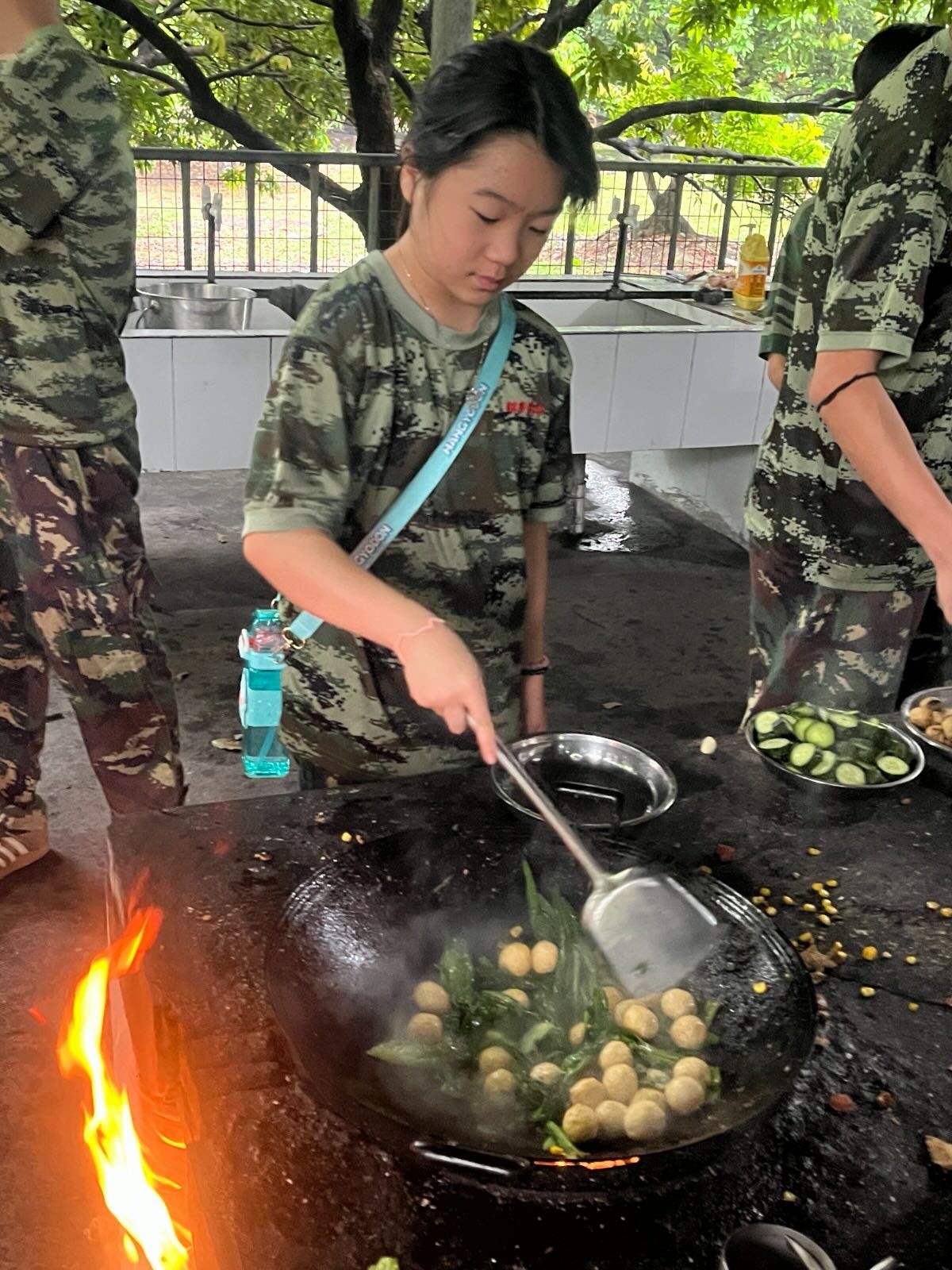 稍作休息後,學生們帶着園裏採來的油麥菜,展開野炊活動。從生火、切肉、煮飯到炒菜,全由學生一手包辦。過程中,大家獲得了滿滿的成就感,也深刻體會到日常的食物得來不易,學會更加珍惜食物。🫶🏻