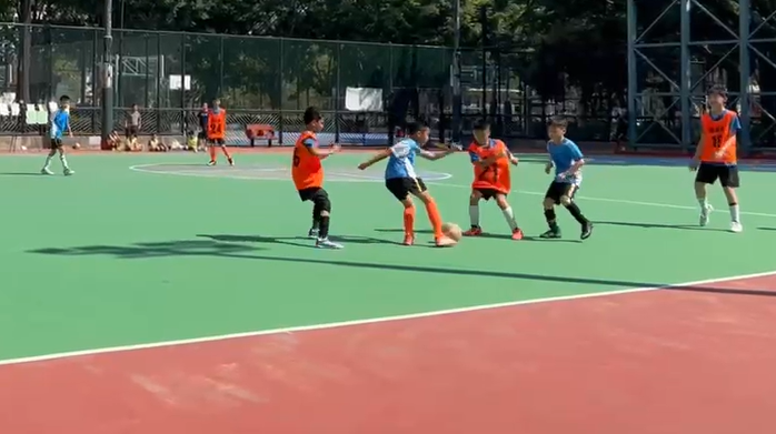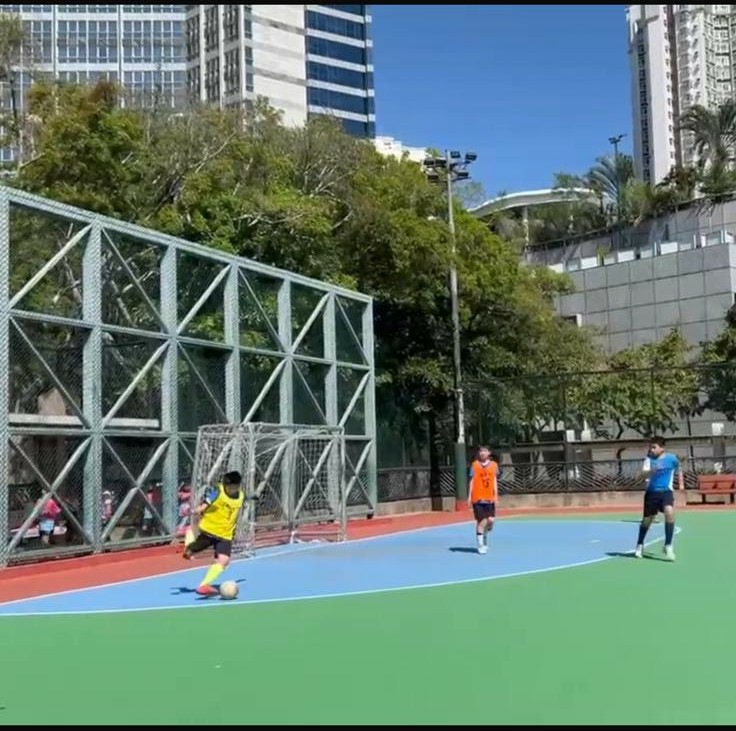 青小足球隊隊員在球場上積極參賽,他們的努力大家都有目共睹。同學們在球場上永不放棄的精神非常值得讚賞。