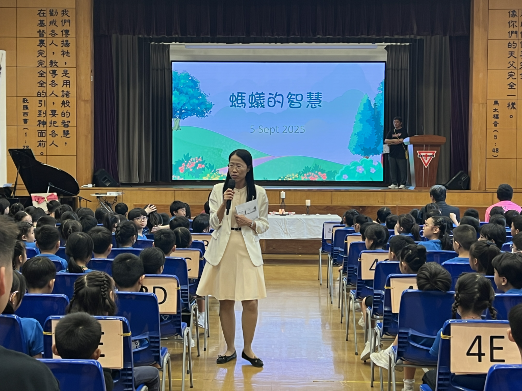 開學禮上,馬校長分享了「螞蟻的智慧」,盼望同學都能學像螞蟻一樣勤勞、團結和盡責。我們又欣賞了各班班相,介紹了全校老師,最後在吳牧師的祝福下完成了「啟蒙禮」。