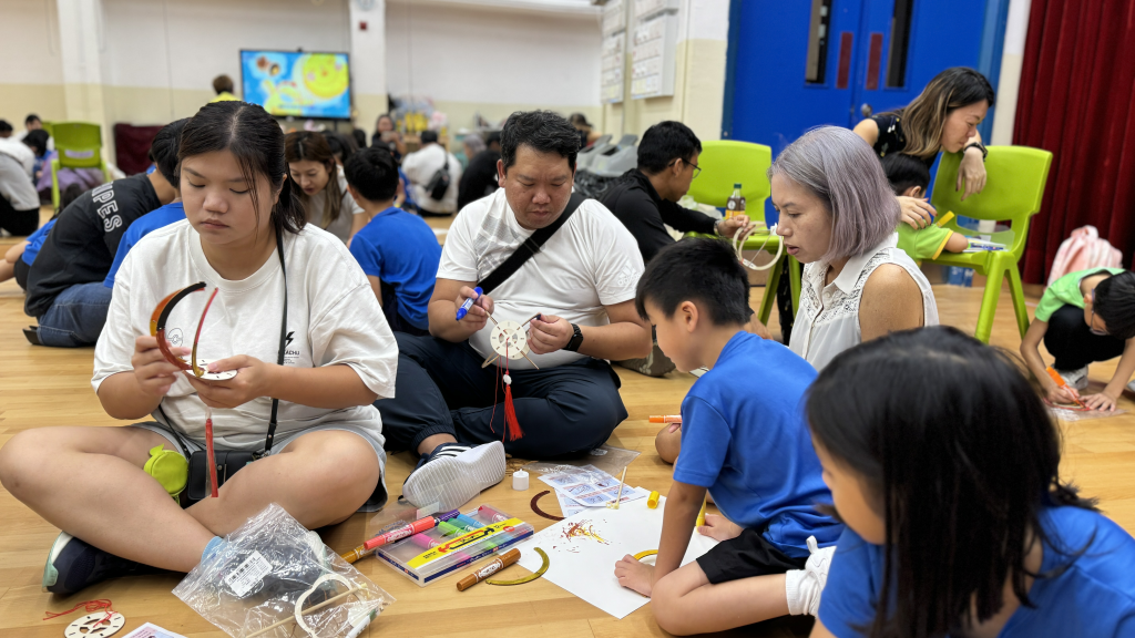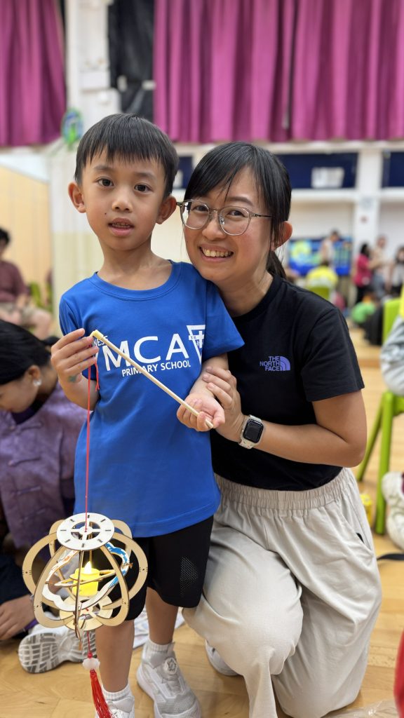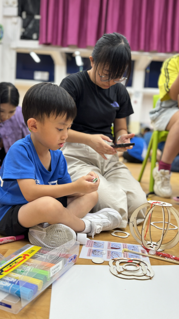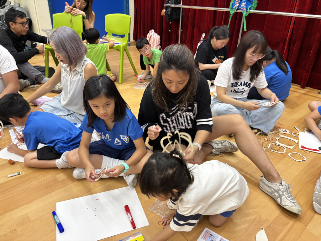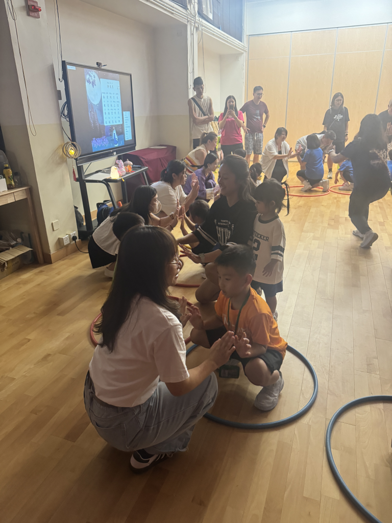 小朋友和家長一起留心聆聽繪本《從前有個月餅村》,到底是誰吃了天上的月亮呢?小朋友聽得津津有味。聽完故事,小朋友再用普通話配以律動方式學古詩。小朋友和家長都玩得很投入啊!中秋節怎能沒有燈籠賞月呢!家長和小朋友合力製作和裝飾STEAM燈籠。