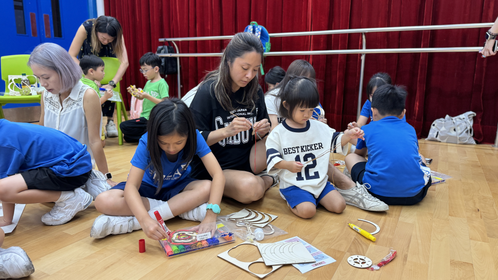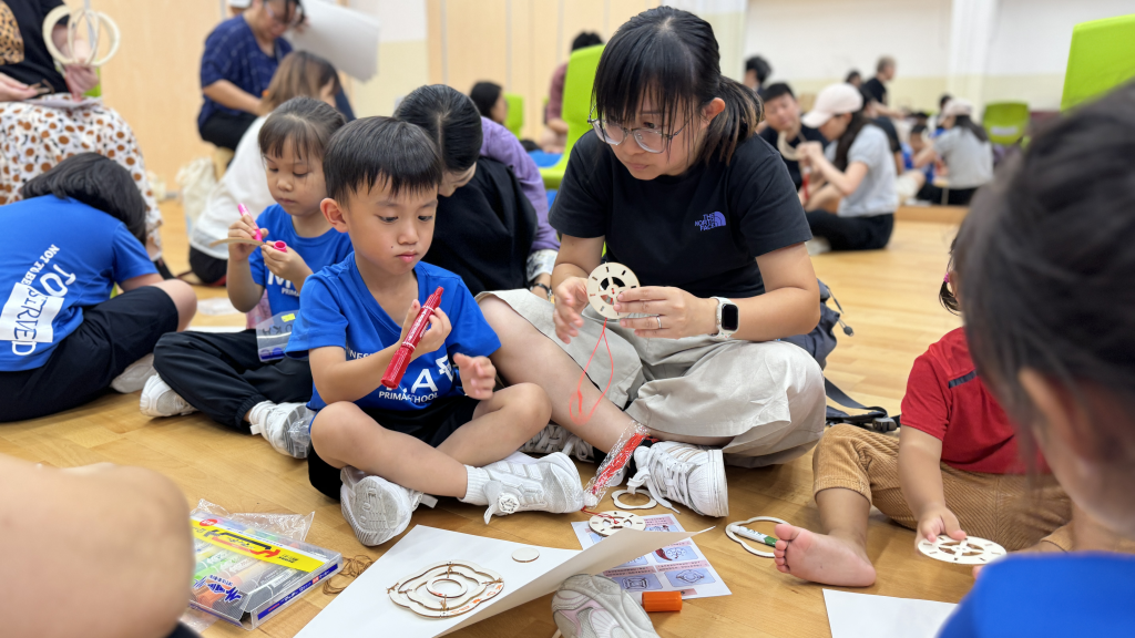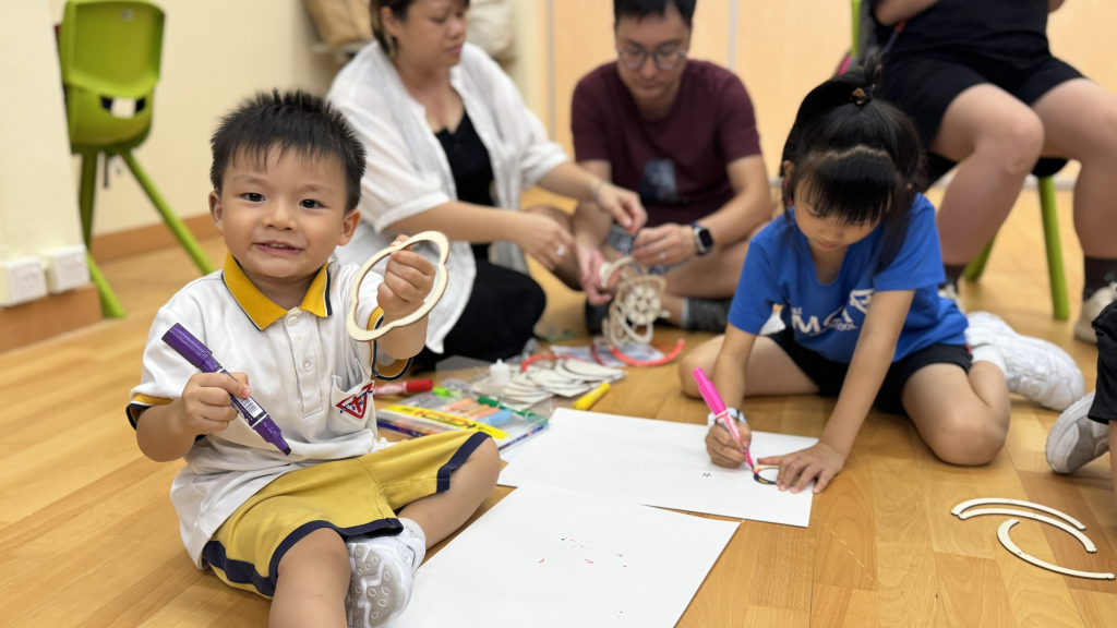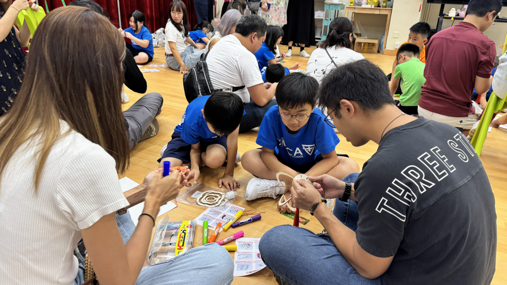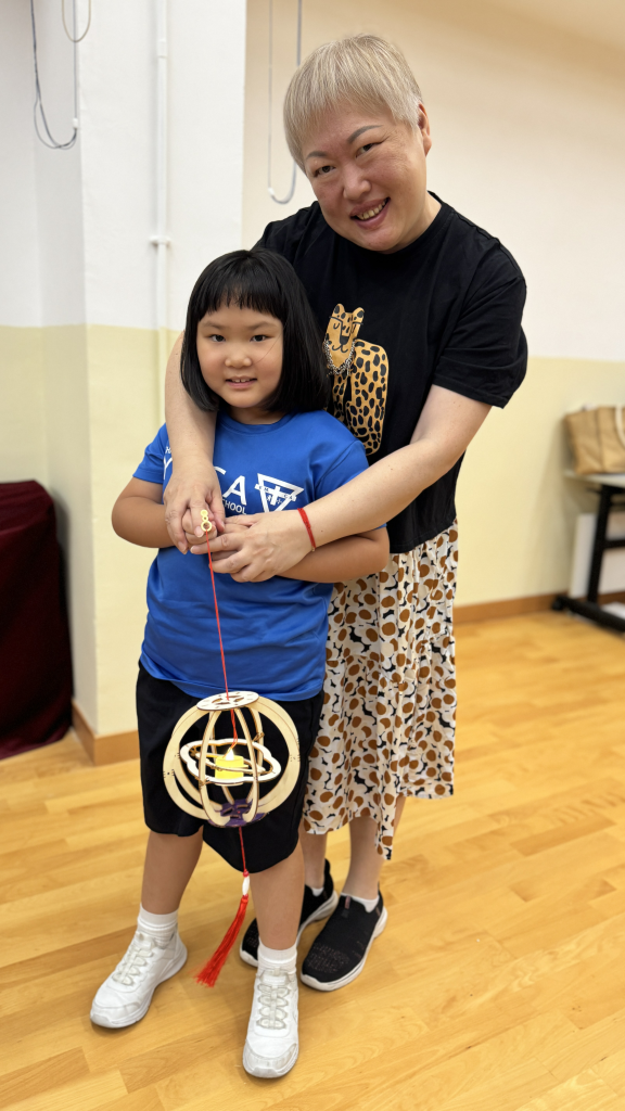 小朋友和家長一起留心聆聽繪本《從前有個月餅村》,到底是誰吃了天上的月亮呢?小朋友聽得津津有味。聽完故事,小朋友再用普通話配以律動方式學古詩。小朋友和家長都玩得很投入啊!中秋節怎能沒有燈籠賞月呢!家長和小朋友合力製作和裝飾STEAM燈籠。