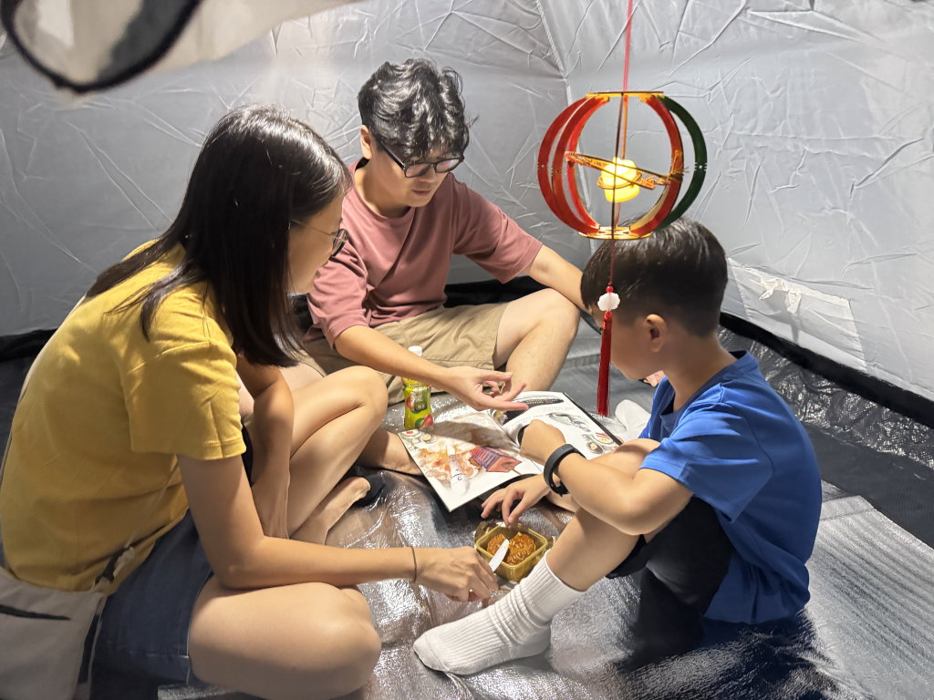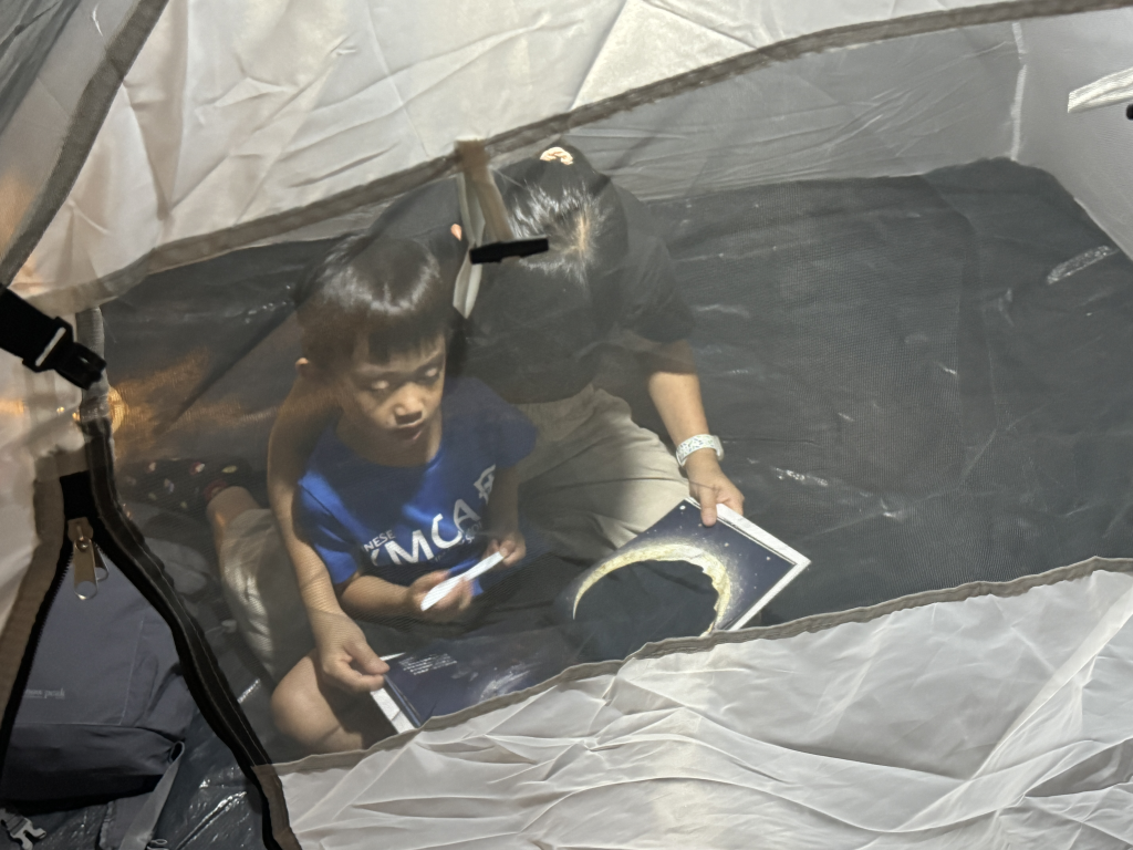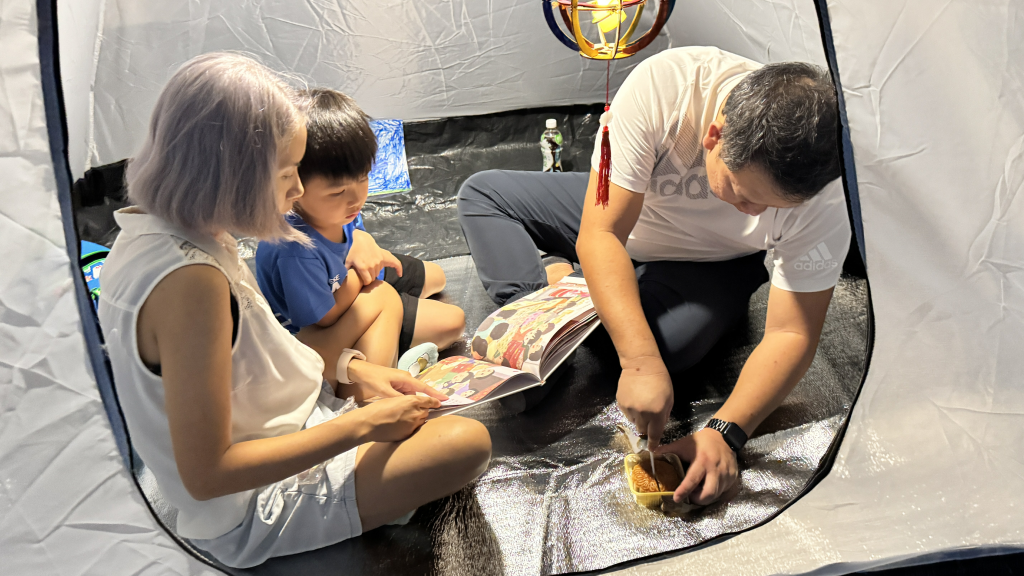 昨晚,小朋友和家人在月光下吃着月餅,靜靜地和家長在帳篷內享受親子閲讀的時光,場面既浪漫又温馨。預祝大家中秋節快樂!期待下一次的親子共讀時光!